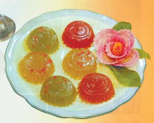 分為鐵觀音、綠茶、花茶三種口味,撒上蜜煉過的桂花,既美觀又香甜爽口,飯后吃上一盤,享盡口福。