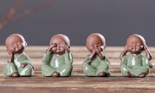 三個小和尚由“三個和尚沒水喝”的故事而來,代表“禪茶一味”的理念。四個小和尚代表非禮勿聞、非禮勿言、非禮勿視、非禮勿動。