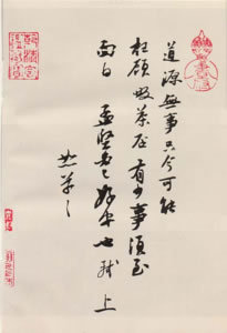 “襄啟,暑熱不及通謁,所苦想已平復。日夕風日酷煩,無處可避。人生韁鎖如此,可嘆可嘆。精茶數(shù)片,不一一,襄上。公謹左右……”。