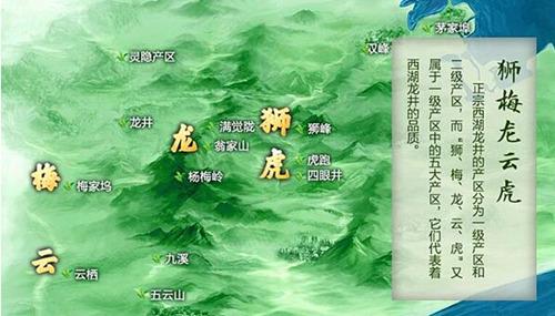 (西湖龍井茶的五大核心一級產(chǎn)區(qū)分布圖)