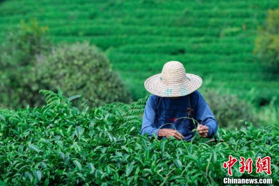 10月28日,廣西昭平縣江口村生態(tài)茶示范基地內(nèi),茶農(nóng)在采摘茶葉。該茶園基地總面積86畝,由中航集團幫扶援建,以生產(chǎn)“生態(tài)有機茶”為發(fā)展定位。