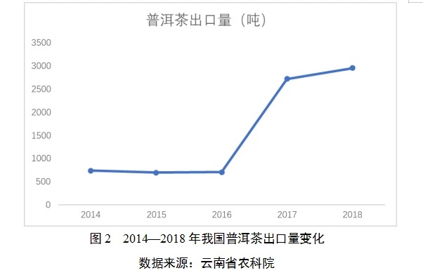 (四)出口國(guó)別多元化。2017年以來(lái),我國(guó)普洱茶出口量較2014—2016年顯著增加,并呈繼續(xù)增加趨勢(shì)。2017年,我國(guó)普洱茶出口量2717.3噸,2018年我國(guó)普洱茶出口量2953.5噸。