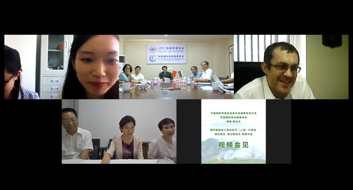 福建省貿(mào)促會(huì)與俄羅斯聯(lián)邦工商會(huì)駐滬代表處視頻會(huì)見現(xiàn)場
