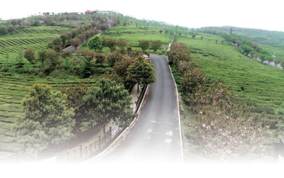 看過(guò)新茶山,我們又驅(qū)車趕到他和戰(zhàn)友們開發(fā)了整整十年的萬(wàn)家山觀光茶園。一條水泥路轉(zhuǎn)了十幾圈方抵山頂。這里有圍欄和觀景臺(tái),有辦公區(qū)、會(huì)議廳、品茶室,有通往各個(gè)景區(qū)的木板棧道,有造型優(yōu)美的白色涼棚。登高遠(yuǎn)眺,群山起伏連綿,一條條公路蜿蜒其間,串連起一個(gè)個(gè)粉墻烏瓦的村莊。遠(yuǎn)近山坡上,遍布一排排齊整的茶樹,仿佛層層碧濤連綿不絕。